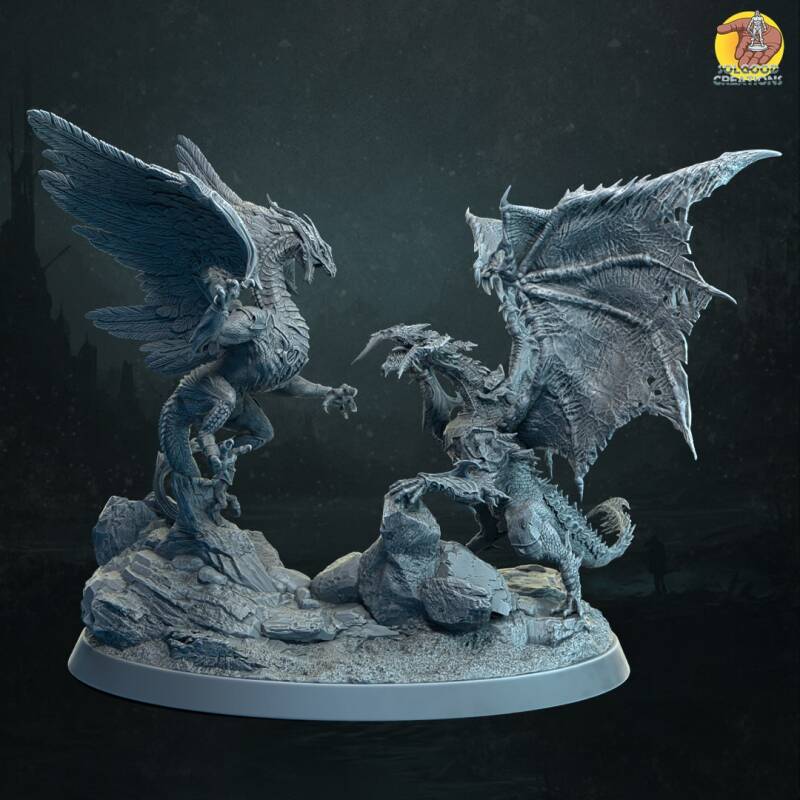 Step into a world where legends come to life and mythical creatures roam free. The Dragon of Heaven and Hell Diorama and Darkleus the Dark Demon King are more than just miniatures—they're gateways to realms of adventure and wonder. Whether you're embarking on a quest to save the world in D&D, leading armies to victory in Warhammer, or seeking to bring these majestic creatures to life on your painting palette, these models offer endless possibilities for creativity and excitement.